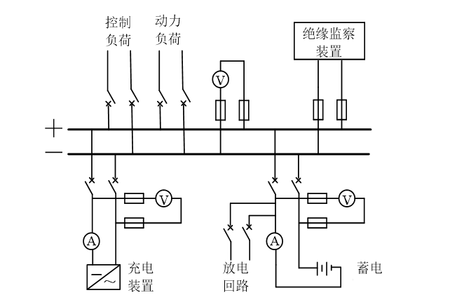 1. 蓄電池、充電機(jī)、直流母線、絕緣監(jiān)察裝置、饋出負(fù)荷。