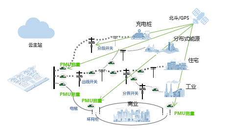 以PMU技術(shù)為基礎,綜合分析時空分布的、多點精確時間同步數(shù)據(jù),構(gòu)建規(guī)?;娏﹄娮釉O備廣域協(xié)調(diào)、超前預測的控制系統(tǒng),解決故障頻發(fā)的配網(wǎng)系統(tǒng)絕緣預警、故障定位、故障保護隔離、自愈、新能源接入后的電網(wǎng)調(diào)度、控制保護及穩(wěn)定性等問題,提高新能源滲透率;實現(xiàn)高效消納新能源及電源側(cè)降本增效、用戶側(cè)節(jié)能減排,使得電網(wǎng)可觀、可測、可控。